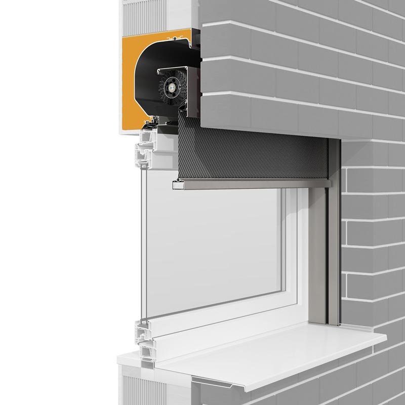 Das Textilscreens-Aufsatzsystem aus Kunststoff. Optional mit außenliegenden Putzträgern oder Aluminiumaußenblende. Die Kastenteile zum Rauminneren bestehen aus einer doppelten Hohlkammer und sorgen somit für Stabilität, Isolierfähigkeit und hohe Schallschutzwerte. Da das System komplett mit den Fenstern ausgeliefert und montiert wird, entstehen nicht nur wesentliche Vorteile in Planung und Umsetzung, sondern auch im Wärmeschutz. Durch die wärmedämmende Einheit von Fenster und Textilscreen kann wertvolle Energie gespart werden und damit bares Geld.